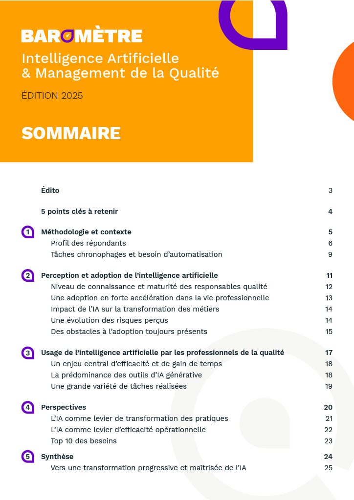 - Le futur de votre métier : Visualisez comment l'IA renforce votre rôle stratégique et étend la portée du management de la qualité au sein de votre organisation.